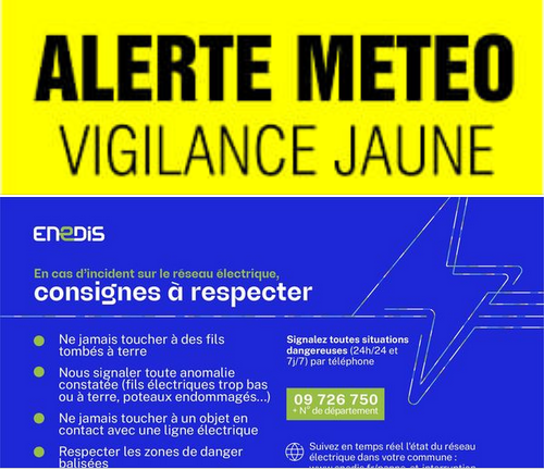 MÉTÉO FRANCE : 🟡 VIGILANCE JAUNE du Dimanche 26 janvier
